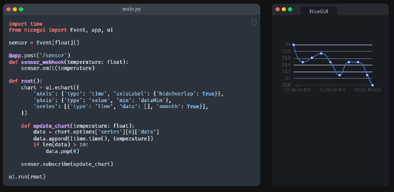 The technology behind NiceGUI lets you create modern web interfaces using only Python, without wrestling with HTML, CSS, or JavaScript. Ideal for quick prototypes, dashboards, IoT, robotics, or internal apps.