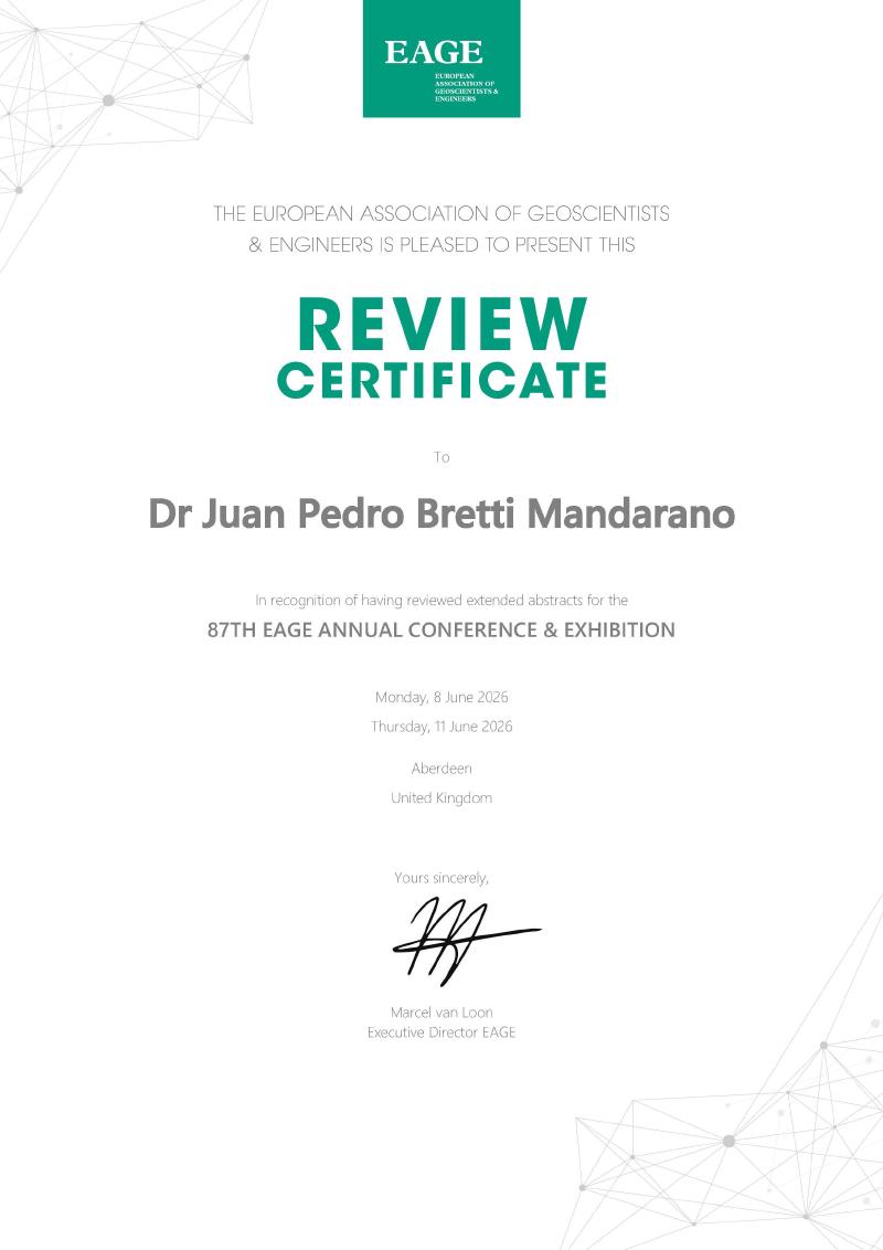 I have just received my certificate as a Technical Reviewer for the papers that will be presented at the EAGE Annual 2026 🌍.
